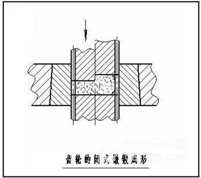 對于齒寬較窄和直徑較大的園柱齒輪,可用的成形工藝有閉式冷鐓鍛成形(圖14)。