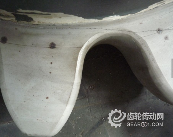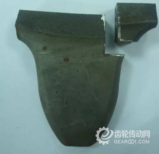 對工件裂紋形貌檢查,選取開裂處切取一個單齒,暴露裂紋面,裂紋面宏觀檢驗,裂紋面形貌一致,呈現應力型裂紋形貌,如圖3所示。