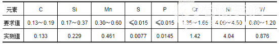 18Cr2Ni4WA化學成分要求及實測值如附表所示,本體解剖的化學成分符合技術要求。
