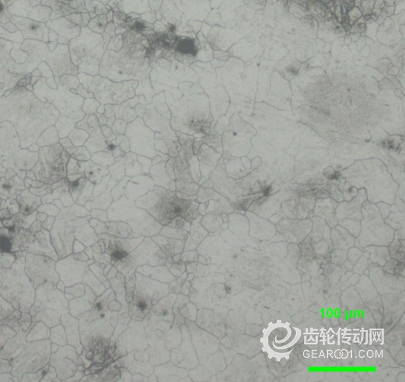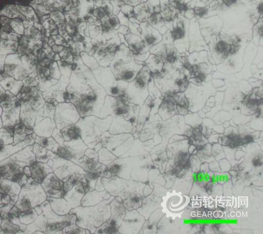 18Cr2Ni4W為低碳高合金滲碳鋼,Cr、Ni、W元素含量遠高于常規的20CrMnMo、20CrNiMo等滲碳鋼,合金元素越高,其在均溫時的合金均勻度指標上要弱于合金含量相對低的滲碳鋼,3.0~3.5mm硬化層需要40h以上滲碳時間,長時間滲碳容易局部晶粒異常長大,在降溫淬火時不會細化滲碳晶粒度,最終淬火后滲碳混晶得以保留。一般18Cr2Ni4W采用滲碳后二次高溫回火再重新加熱淬火路線,采用此熱處理路線可以保證殘留奧氏體等金相組織性能基礎上產生較小的淬火應力。若18Cr2Ni4W需要采用滲碳降溫淬火路線,則必須控制鍛件奧氏體晶粒度指標不能存在混晶現象,鍛件奧氏體晶粒度檢測的溫度及保溫時間需要與滲碳溫度及保溫時間基本相同,同時需要控制淬火冷卻介質的冷卻速度以及充足的回火時間,以減小淬火應力。