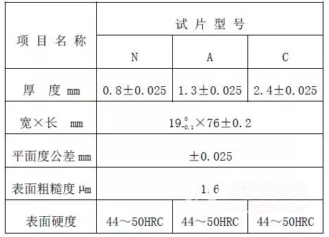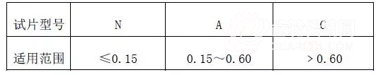 試片的應(yīng)用范圍見(jiàn)表2所示