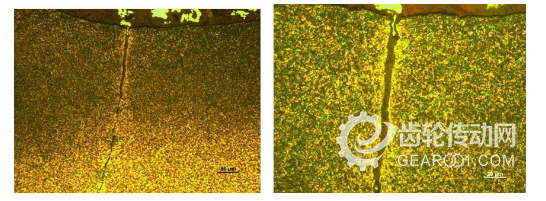 (2)齒輪軸裂紋的產生,是因為個別零件碳氮共滲后變形超差,增加了校直工序。而由于校直過程控制不當,所以產生了應力裂紋。