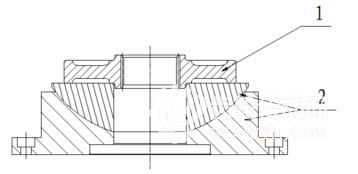 拉削過程中,工作臺等支撐承件不可避免地會發(fā)生變形,工件端面與拉削中心線垂直度不易保證,最終導致拉削精度不高。為了提高受此類因素影響的端跳精度,我們可以從工裝夾具方面著手。