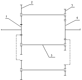 1一級小齒輪 2一級大齒輪 3二級小齒輪 4二級大齒輪 5扭力軸