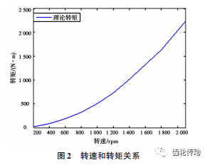 變速箱配有液力緩行器,其處于變矩器和行星齒輪之間,由變速箱的殼體組成封閉空腔,內部有轉子可以隨傳動軸轉動。車輛在平路正常行駛時,液力緩行器空腔內沒有液壓油,轉子在空腔內轉動,攪動空氣只損耗極少的功率,車輛下坡時,通過液控閥向液力緩行器空腔充油液,轉子轉動油液造成阻力,用于抵消下坡產生過多的機械能,對汽車起輔助制動作用。液力緩行器轉子轉速與轉矩的關系如圖 2 所示。