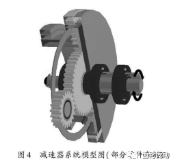 在各部件建模和約束完成后需要將它們裝配定位,組成一個(gè)完整的減速器模型,最終完成后的減速器仿真模型如圖4所示。