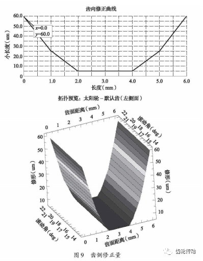 經(jīng)仿真計(jì)算發(fā)現(xiàn)減速器中的太陽輪與行星輪嚙合齒面存在偏載情況,適宜采用鼓形修形的方法進(jìn)行修形。最終在軟件中定義的修形量如下圖9所示: