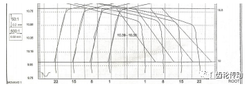 兩個工件的第 1、8、15、22 齒對應的 Fα、 ffα、fHα 值見表 2,此時相關誤差數值顯著減小。實際加工中可根據毛坯材料、待加工花鍵的具體特征、加工設備及刀具等適當調整,以確保加工出高質量的漸開線花鍵。針對齒形、齒向方向產生的異常凸點,可仔細檢查搓齒板每個齒上是否沾有雜質、加工中使用的冷卻油是否污染,過濾系統是否堵塞,以上問題解決后,齒面異常凸起可自然解決。齒向形狀超差是指齒面形狀在導程方向誤差大。遇到此類問題可先查看花鍵是否帶螺旋角,對應的搓齒板螺旋角是否一致,螺旋角旋向是否正確。如刀具正確仍然出現如下問題,可檢查刀具正面安裝精度,將搓齒機調整至點動模式,檢查正面安裝面的跳動,通過調整該安裝面的跳動至 2 絲內,即可消除齒向形狀超差問題。當然刀具各個安裝基準面的清潔度在任何時候都非常關鍵,會對花鍵質量產生較大影響。