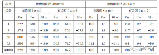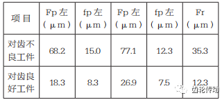 表 3 對齒不良和對齒良好的工件左右齒距、跳動誤差對比