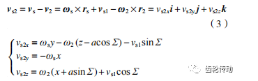 只要已知刀具和工件的位置矢量和角速度,就可以得到相對速度。相對速度vs2可表示為