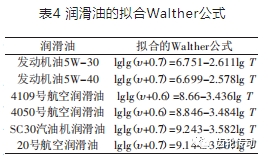 潤滑油的擬合Walther公式如表4所示。
