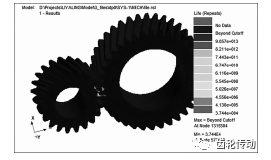 圖8 UDDS循環工況減速器齒輪疲勞壽命云圖