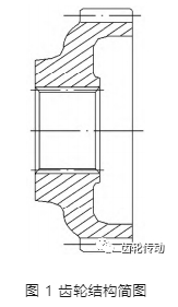 零件結構:齒輪結構有對稱結構、非對稱結構。非對稱結構有左右凸出不等、左右內凹究對象。該類型零件具有熱處理變形大,熱后工藝保證能力差等特點。典型零件結構如圖 1 所示。