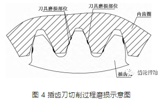 ( 3) 內齒圈左右齒面和齒根都有嚴格公差要求,需要三個面同時刮削,即插齒刀頂刃也要參與切削,故合理的切削參數設定是保證齒形精度的重點和難點。