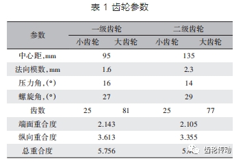 該純電動汽車驅動電機最高轉速為 16 000 r/min,峰值扭矩為 320 N·m,齒輪轉速高、承載大,要求減速器每級齒輪重合度>4,TE<0.25 μm。