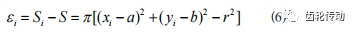 設擬合圓的面積為S,圓心為(a,b),半徑為r。通過Canny算子邊緣檢測得到的第i個邊界為D(xi,yi), i∈(1,…,n),該點距離圓心的距離為ri ,以ri 為半徑的圓面積為Si ,那么兩個圓的面積誤差εi 為: