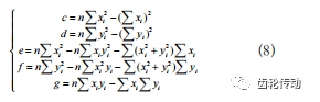 根據最小二乘原理,當誤差εi 的平方和最小時,解得: