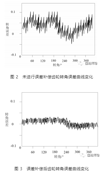 由圖 2、圖 3 可知,未經過誤差補償處理的小模數齒輪,在傳動過程中,轉角誤差的變化幅度較大,整體運行較不穩定;經過文中提及的誤差補償方法處理后,有效降低了齒輪的轉角誤差,在傳動過程中平穩性較強,能夠實現數控機床小模數齒輪的高精度加工。
