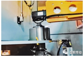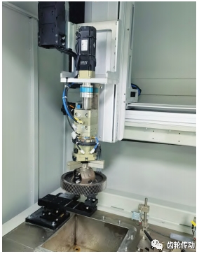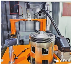 機(jī)器人將壓裝好的部件取出并傳遞到焊接設(shè)備(圖 3),通過專用的工裝軸向定位夾緊后,采用高能量填絲焊技術(shù)將差速器殼體和主減齒輪焊接成為整體。整個(gè)焊接過程非常快捷,激光器發(fā)射激光,先將鎳基焊絲融化,然后焊絲作為焊接中介將差速器和主減齒輪融合成一個(gè)整體。