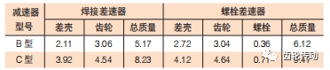 差速器和主減齒輪通過焊接方式連接取代了傳統(tǒng)的螺栓連接方式,不僅節(jié)省了大量的螺栓,而且差速器殼體和主減齒輪結(jié)構(gòu)設(shè)計(jì)更加簡約,質(zhì)量明顯改善。根據(jù)株洲齒輪開發(fā) 3000 N · m 的 B 型減速器和 5000 N · m 的 C 型減速器的焊接差速器和螺栓差速器對比,發(fā)現(xiàn) 3000 N · m 的 B 型減速器焊接差速器總質(zhì)量較螺栓差速器總質(zhì)量減少了 0.95 kg,減重約 15.5%;5000 N · m 的 C 型減速器焊接差速器總質(zhì)量較螺栓差速器總質(zhì)量減少了 1.24 kg,減重約 13.1%。由此可見焊接差速器在輕量化方面具有明顯優(yōu)勢,見表 1。