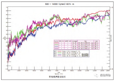 焊接差速器齒輪磨齒后可以達(dá)到 2 級齒輪精度,裝配到減速器中進(jìn)行 NVH 測試,二級齒輪噪聲有明顯降低,噪聲較螺栓差速器齒輪箱降低 2 dB, 如圖 5 所示。