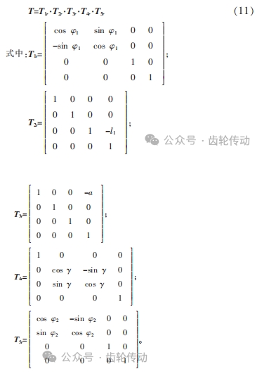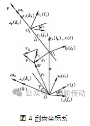 如圖 4 所示,根據(jù)刮齒坐標系可以對總變換矩陣 T 進行如下描述: