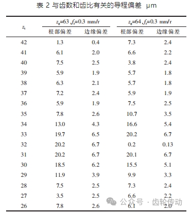 (3)減少刮齒刀軸向進給可以進一步較少進給誤差。對于具有最大公約數(shù)的工件和刮齒刀的齒數(shù),為了提高加工效率,需要提高軸向進給量。如果工件齒數(shù)與刮齒刀齒數(shù)不匹配,則必須選擇軸向進給,直至導程偏差滿足加工要求。