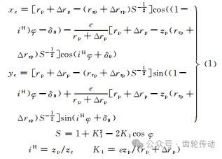 根據(jù)擺線齒輪的嚙合及成形原理,擺線齒輪有移距修形、等距修形和轉(zhuǎn)角修形三種修形方式。含有這三種修形的齒廓方程為