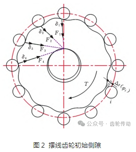 經(jīng)過修形后,擺線齒輪與針齒之間產(chǎn)生間隙,其法向方向的初始側(cè)隙 Δs(φi)為
