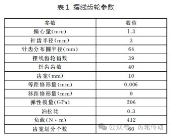 為驗(yàn)證上述計(jì)算方法的可行性,本文采用某型號RV減速機(jī)的擺線齒輪進(jìn)行分析,其參數(shù)如表1所示。