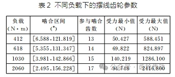 隨著負(fù)載逐漸的增大,嚙合區(qū)間范圍逐漸增大,參與齒數(shù)隨之增加,參與嚙合的各個(gè)齒所受到的力的波動(dòng)程度也逐漸加劇,其數(shù)據(jù)如表2所示。