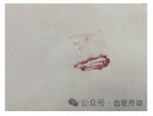 在本次試驗(yàn)中,被測 RV 減速機(jī)中的擺線齒輪齒面上有13處接觸痕跡,而有5處痕跡尤其明顯,這5處集中在齒面拐點(diǎn)附近,越遠(yuǎn)離拐點(diǎn)的齒號,其受力會逐漸減小,接觸痕跡也會逐漸減輕。這說明被測擺線齒輪中靠近齒廓拐點(diǎn)的部分齒承擔(dān)大部分負(fù)載。取靠近拐點(diǎn)處的5號齒,在接觸痕跡涂抹紅印,采集后的印痕如圖23所示,齒寬方向的接觸痕跡往偏載方向逐漸擴(kuò)大,試驗(yàn)結(jié)果與仿真結(jié)果的趨勢一致,較為吻合。