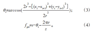 當齒廓在分度圓上的點坐標值(xi ,yi )已知時,利用余弦定理可以算出分度圓上相鄰齒廓兩點之間的向徑夾角θi,則單個齒距偏差fpti 可表示為: