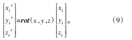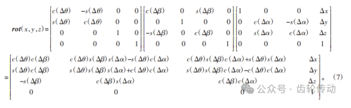 因為轉動角Δα、Δβ、Δθ都為極小值,所以各轉動角的cos()值為1,各轉動角的sin()值為其轉動角的弧度值,忽略變換矩陣中各項的高階無窮小,則矩陣可簡化為