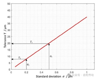 圖2 目標(biāo)Cg為1.33的示例的圖紙公差和所需標(biāo)準(zhǔn)偏差。