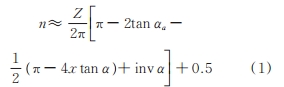 式中 Z 為齒數,αa為齒頂壓力角,x 為變位系數,α 為分度圓壓力角,inv(·)為漸開線函數。