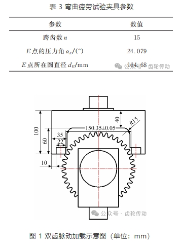1)完善了國標 GB/T 14230?1993 的“B 試驗法”專用夾具的跨齒數和載荷作用點的壓力角的計算公式,設計了脈動疲勞試驗機齒輪試驗專用的齒輪和夾具。
