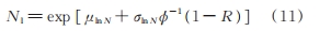 (1)按確定的壽命分布函數計算不同可靠度 R 的壽命值。對于對數正態分布,其計算公式為