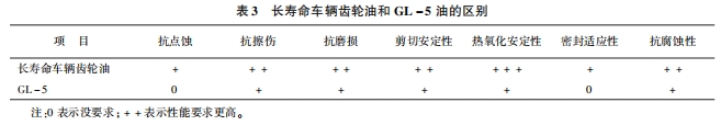 隨著商用車向著節能型、輕量型、重載化的方向發展,其變速箱和驅動橋工況更加苛刻,比如卡車重載化使得驅動橋齒輪傳動的功率增加,而驅動橋齒輪的幾何尺寸并沒有很大變化,導致齒面壓力增加, 溫度升高。特別是商用車車體設計不斷改進,使空氣動力學性能更趨合理,車輛行駛時空氣阻力減小, 流過驅動橋外表面的空氣流量減少,散熱性變差。這些工況的變化對新一代的車輛齒輪油提出了更高的要求。以長壽命車輛齒輪油的性能要求來說,相 對于 GL - 5 油,在熱氧化安定性、密封件適應性、抗腐蝕性、抗點蝕、極壓抗磨性、剪切安定性方面均提出了更高的要求。 具體如表 3 所示。