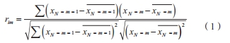 式中:rim 為第 i 個窗口在第 m 個與 m-1 個信號序列的相關系數 ;xN-m 為長度為 N 的窗口截取的第 m 個信號。