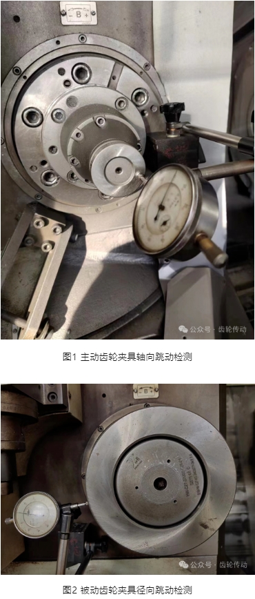工裝夾具要定期校驗和保養(yǎng),達(dá)到使用標(biāo)準(zhǔn)。如工裝夾具精度不達(dá)標(biāo)或在使用中磨損,就會影響齒輪精度。要使用精度高確保加工精度,耐用保持穩(wěn)定可靠一致性,和適用安全性,滿足加工的精度需求,在實際生產(chǎn)中主被齒切齒夾具的徑向跳動和軸向跳動應(yīng)采用校正棒和校正環(huán)進(jìn)行校驗,徑向跳動和軸向跳動均應(yīng)控制在≤0.02mm,具體檢測部位及檢測方法如圖1和圖2所示: