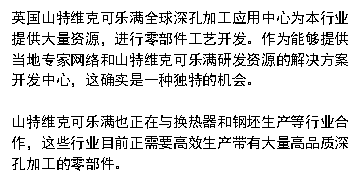 案例。英國山特維克可樂滿全球深孔加工應用中心為航空航天、能源和一般工程領域的復雜孔加工提供高效率的刀具及解決方案,并在這方面創下了良好的記錄。