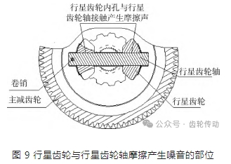 3) 行星齒輪采用磷化處理,增加其內孔表面油膜吸附能力,改善其與行星齒輪軸摩擦聲音,摩擦部位如圖 9.