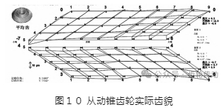 齒輪加工:本文研究的齒輪在磨齒工序后加入了研齒工序。同批次成品齒輪副的齒貌:從動(dòng)錐齒輪齒貌相對于理論齒貌的吻合度依舊很好;主動(dòng)錐齒輪齒貌相對理論齒貌有一定差異。