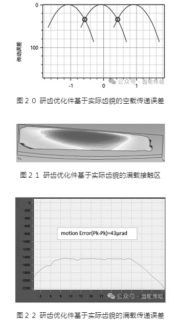 仿真計(jì)算結(jié)果對比:齒輪進(jìn)行研齒優(yōu)化后,同樣利用 GEMS軟件,將研齒優(yōu)化后的實(shí)際齒貌反調(diào)為新的理論齒貌,以此為基礎(chǔ),計(jì)算其空載傳遞誤差,結(jié)合 MASTA 軟件的錯(cuò)位量信息,計(jì)算加載傳遞誤差。
