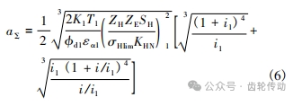 設計雙級傳動系統的功率分路數為 Nb,總傳動比為 i,第一級傳動比為 i1,第二級傳動比為 i2,輸入轉矩為 T1,則總中心距為: