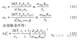 設兩級齒輪傳動的材料、安全系數、端面重合度、綜合系數和極限應力皆相同,則有: