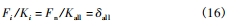 根據式(7) 中確定的載荷、剛度以及變形關系,帶入式(13) 等式左側,可推導出: