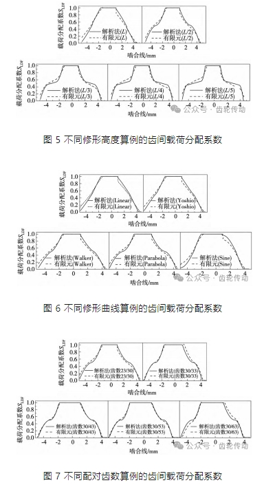 分析如圖 5 ~ 圖 7 所示的齒間載荷分配系數結果可知: