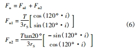 傳動過程中齒輪嚙合力 Ft、針齒嚙合力 FP、曲柄軸受力 Fi、支撐軸承軸力影響 FG,各力的表達式如式 (11) 所示。